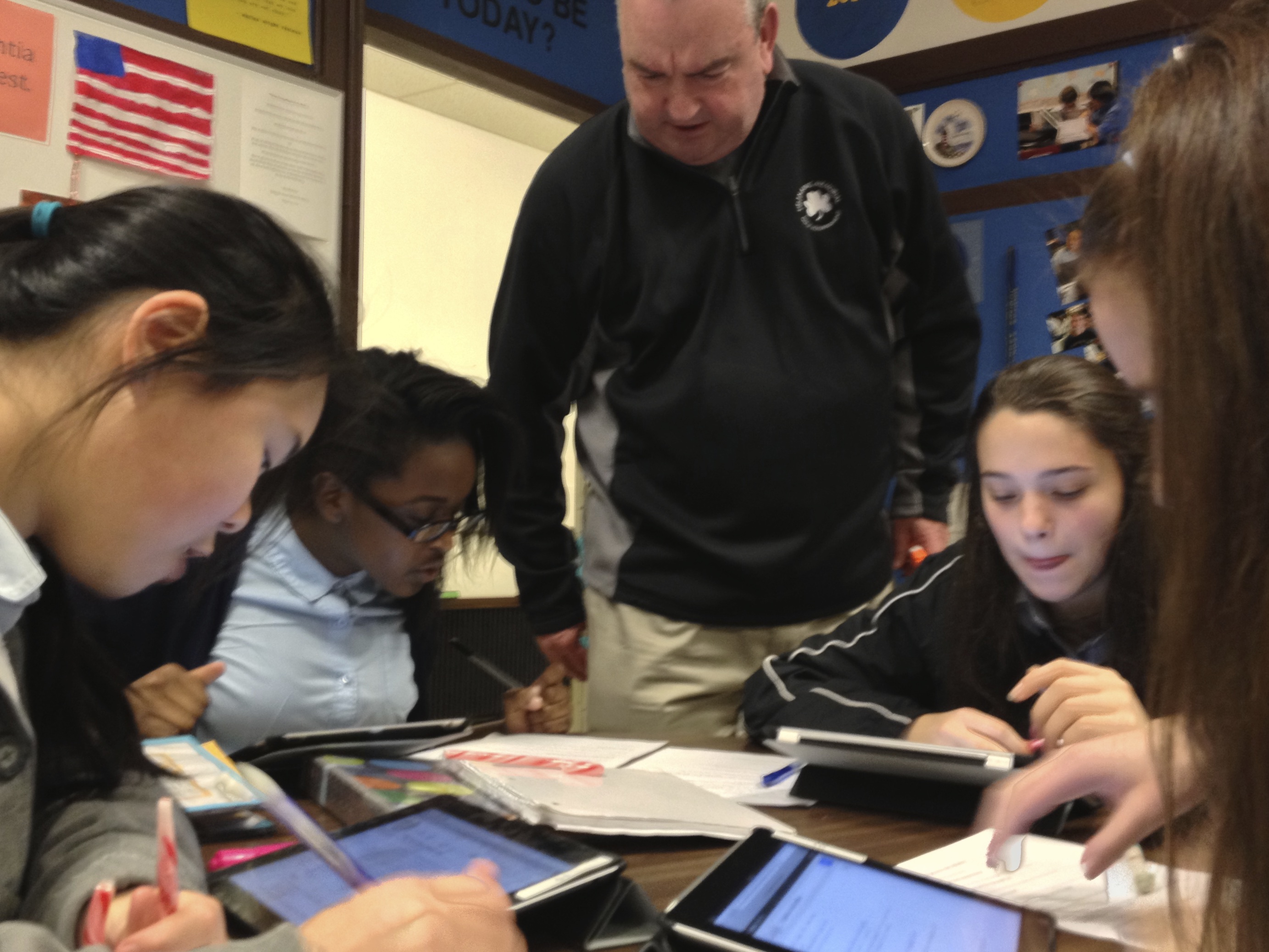 8th graders at Holy Cross School in South Portland work with iPads. Photo by Chris Toy.