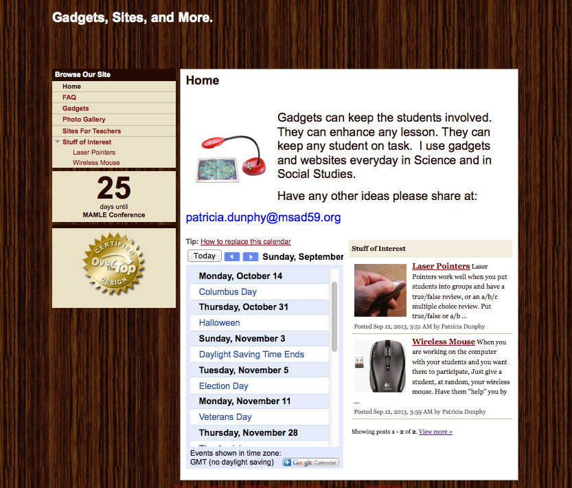 Pat Dunphy from MSAD 59 in Madison shares her Google site below. Click, read, and learn how to use your wireless mouse and laser pointer to actively involve your students in a lesson. Pat will be presenting at the MAMLE Conference on Thursday, October 17–Attend her session to pick up some new strategies!