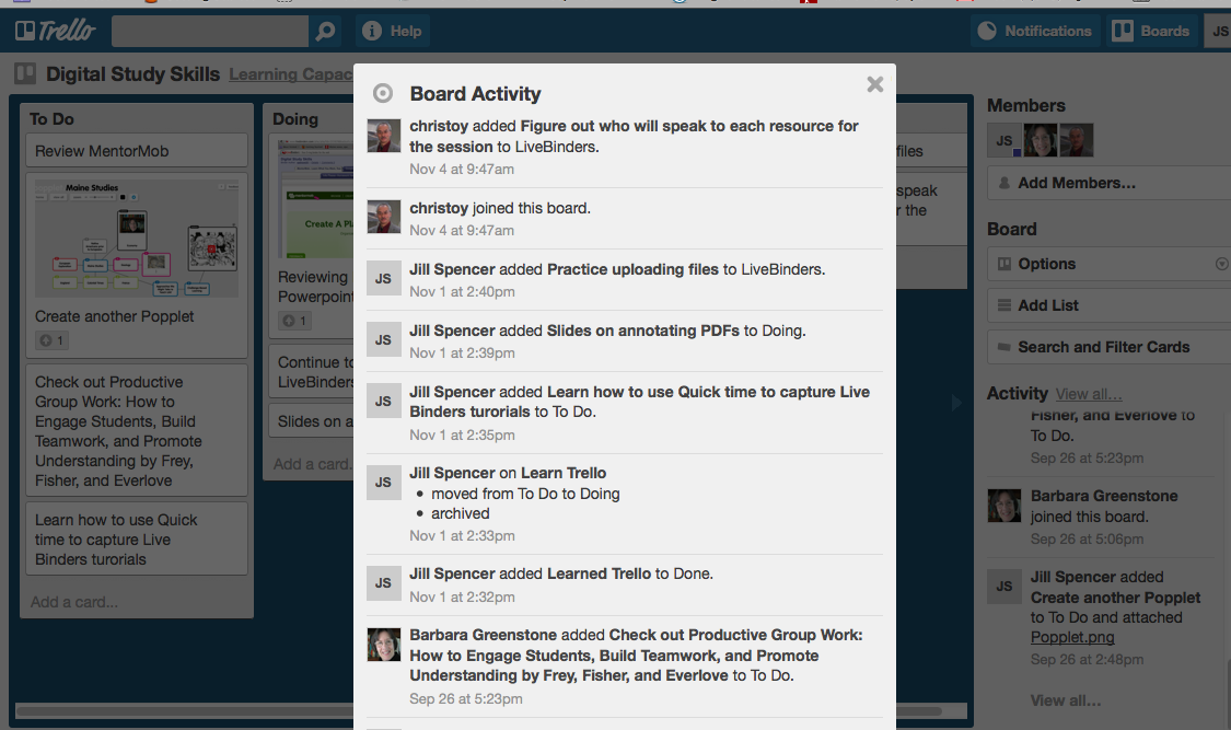 The other neat thing about Trello is that the teacher can track who is contributing to the project.
